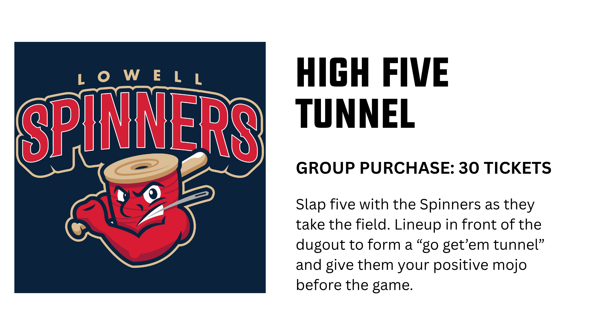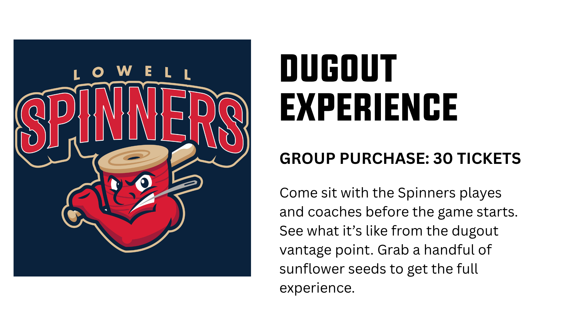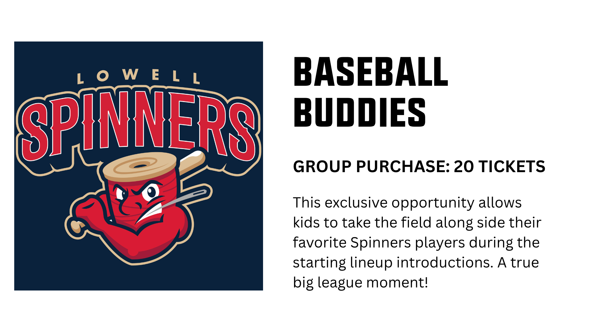 A night with the Lowell Spinners is more than just baseball—it’s a shared experience built around fun, connection, and classic summer energy. Group outings start with as few as 20 tickets, making it easy to gather your crew and enjoy discounted pricing along with exclusive perks.