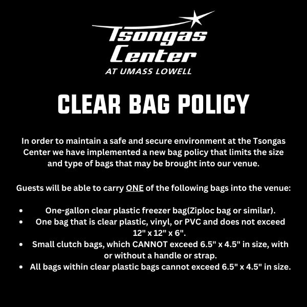 Please be advised of the Tsongas Center Bag Policy that will be in effect for the high school graduations: