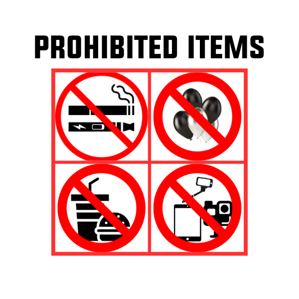 - One bag that is clear plastic, vinyl, or PVC and does not exceed 12" x 12" x 6".